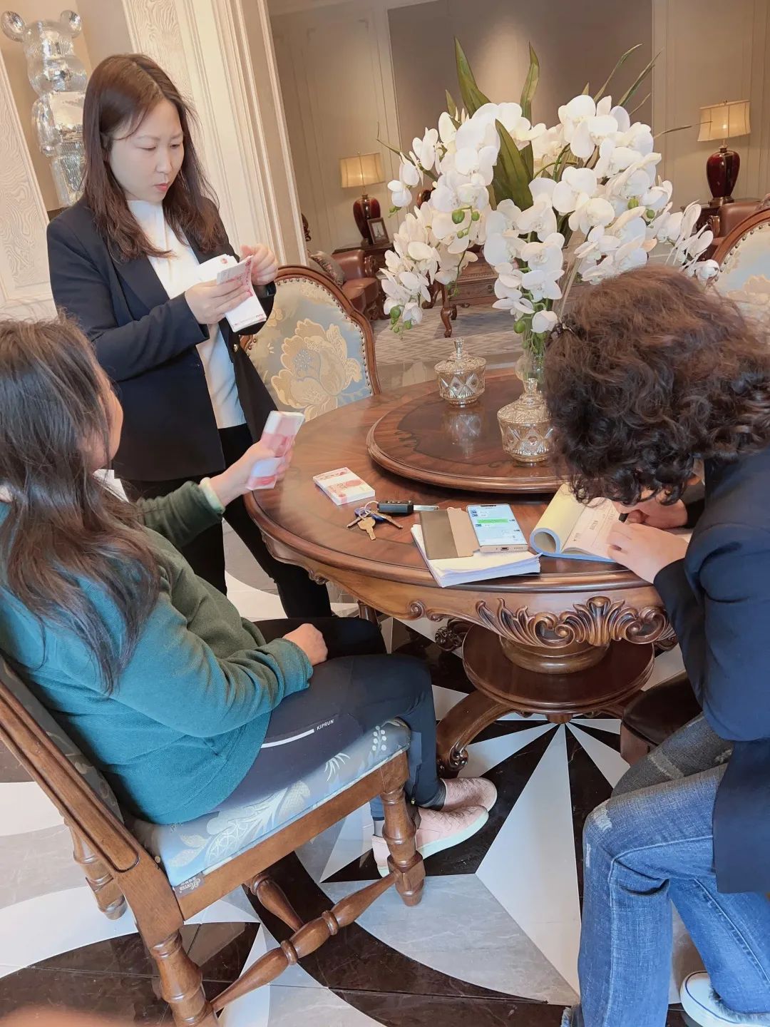 2023年,旺财28全案店面和营销团队再度升级,胶州古典整案店试营业期间,集团公司直营团队,设计帮扶团队,督导团队等精英团队全面为整案店面赋能,加强每一位员工的技能指导,提升店员之间的协作。